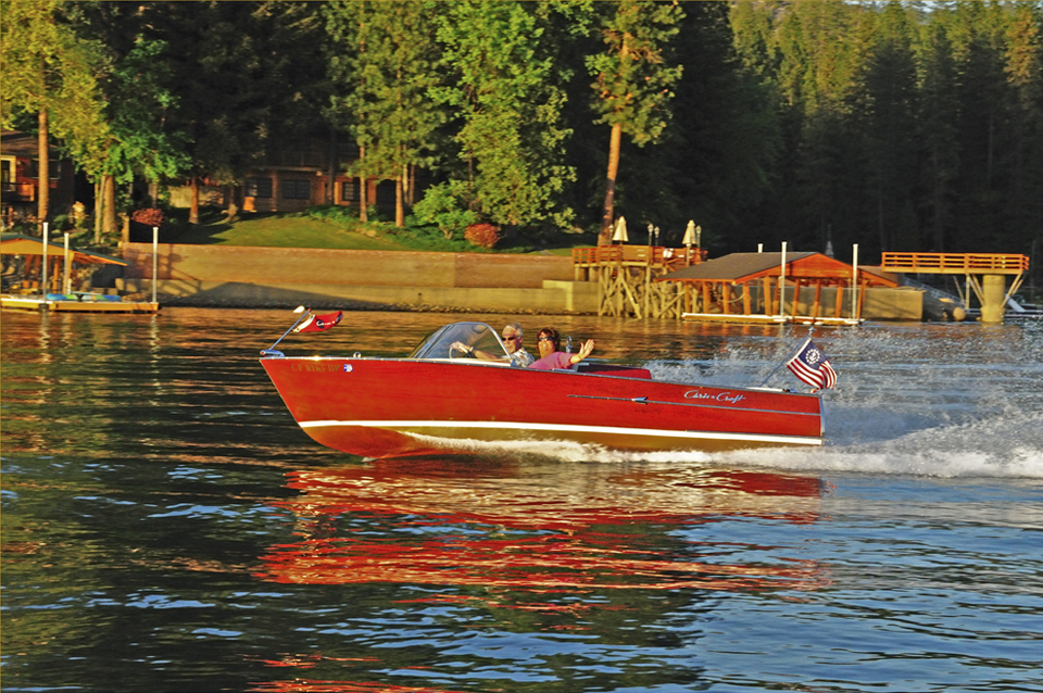 1940 Chris Craft 17ft. Deluxe Runabout : This boat was delivered to the Chris Craft Dealer Lake Delavan Illinois in 1940. It found it's way to Santa Barabra California and sat for 20 years before it was sold to the present owners, Dr. and Mrs. Tom Spillner of Vacaville Ca. After a lenghty restoration by Pleasurebent Boats, she took 1st place at the Tahoe Boat Show August 2018.